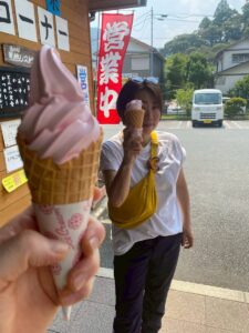 「ソフトクリームあります」の文字を見ると、なぜか足が勝手に向かってしまう大将。