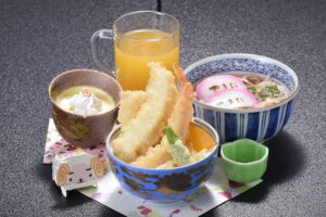 館内を歩き回ってお腹が空いたら、旬の食材を使った和食でほっと一息。お子様向けのランチセットもございますので、ご家族みんなで安心してお食事いただけます。