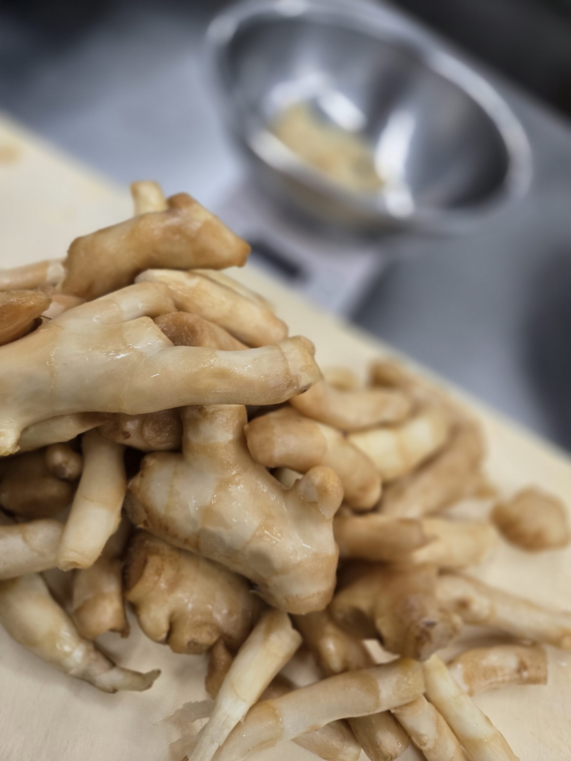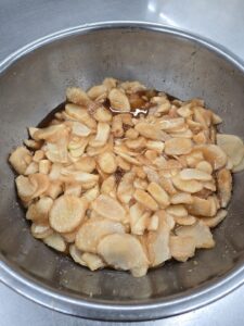 1. 生姜はよく洗って皮付きのまま薄切りにします。