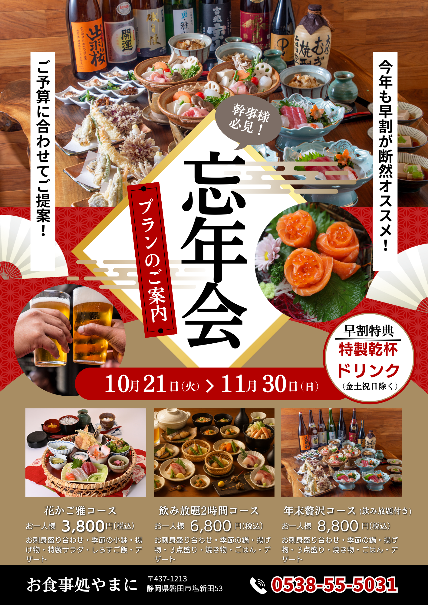 一年の締めくくりにふさわしい、やまにの忘年会コース。