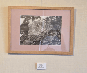 玉利さんの作品は、花や動物を題材にした温かみのある鉛筆画。