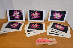 原画や写真展示のほか、蓮のポストカードも販売しております。