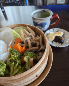 私の一日は、せいろで蒸したたっぷりの野菜から始まります。