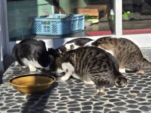 みんな桜耳で、地域猫として大切にされている様子でした。