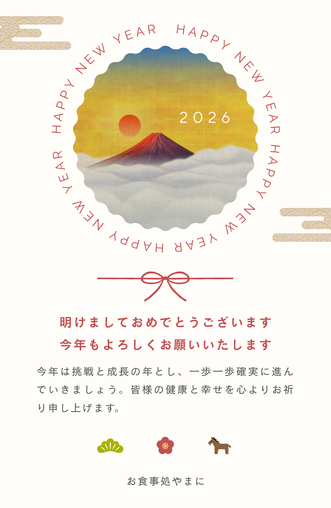 2026年が、皆様にとって健康で、笑顔あふれる素晴らしい一年となりますよう、心よりお祈り申し上げます。 本年も「お食事処 やまに」を、どうぞよろしくお願い申し上げます。