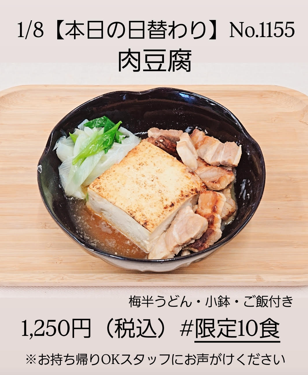 【限定10食です!】 毎日心を込めて仕込んでいるため、10食限定でのご提供となります。「今日は肉豆腐の気分!」という方は、ぜひお早めにご来店くださいね。