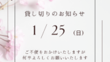 1月17日(土)はご宴会のため、昼・夜ともに貸し切り営業