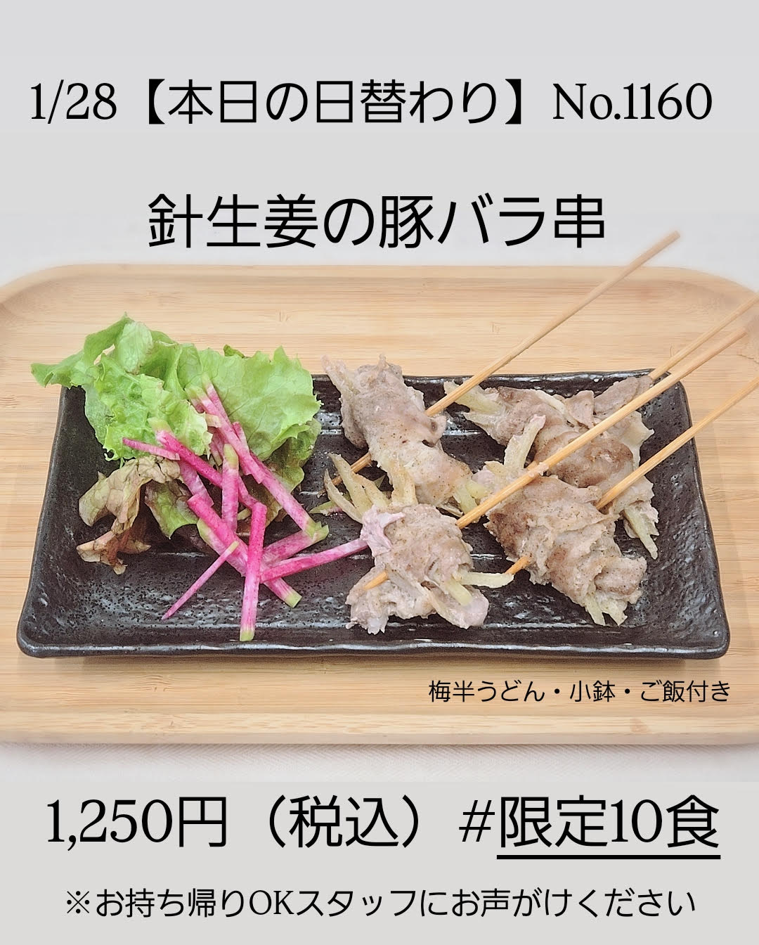 「これはぜひ食べていただきたい」と女将が太鼓判を押す本日の日替わりランチ。豚バラと生姜の絶妙なバランスを、ぜひ一度味わってみてください。