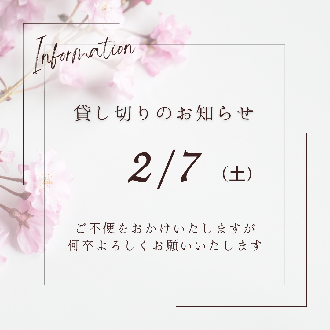 2月7日(土)は、昼夜ともに貸し切り営業とさせていただきます。