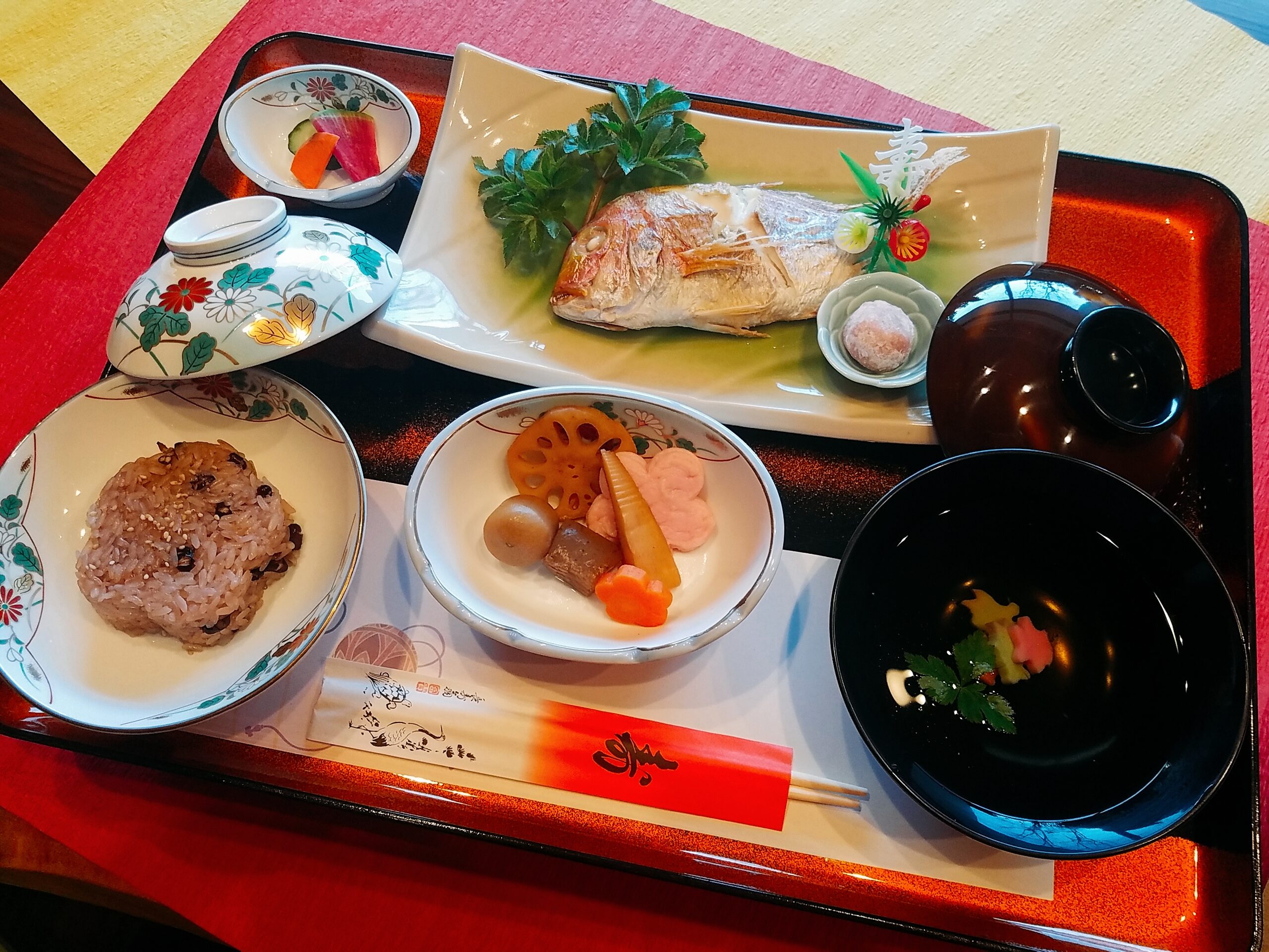 大将は今朝から丁寧に仕込みを重ね、女将とスタッフは器の並べ方ひとつにも気持ちを込めて準備を整えました。おめでたい席には欠かせない鯛の姿焼きをはじめ、縁起ものの食材をあしらったお祝い膳を、心を込めてご用意しています。赤飯のふっくらとした炊き上がり、炊き合わせの色とりどりの野菜――お料理を通して、ご家族の喜びをさらに彩ることができたなら、これ以上の喜びはありません。