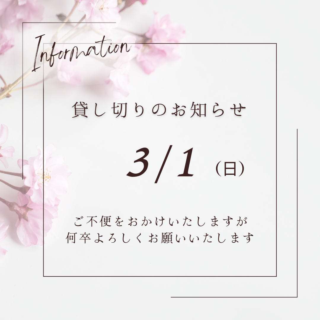 📢【3月1日(日)貸し切り営業のお知らせ】