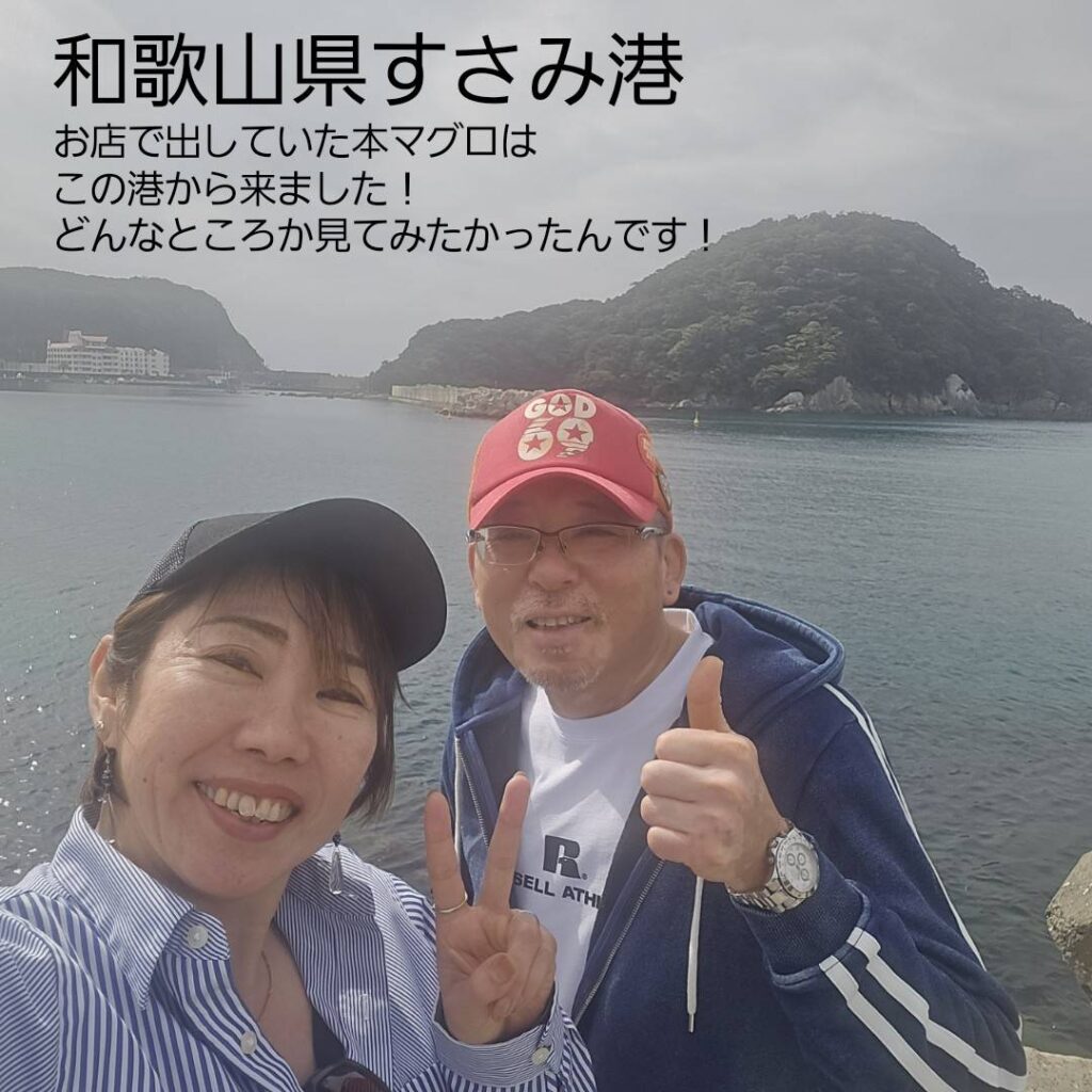 旅の始まりは和歌山県の南部にある「すさみ港」。 実は、当店でお出ししている自慢の本マグロも、かつてこの港から届いたことがある、非常に縁の深い場所です。
